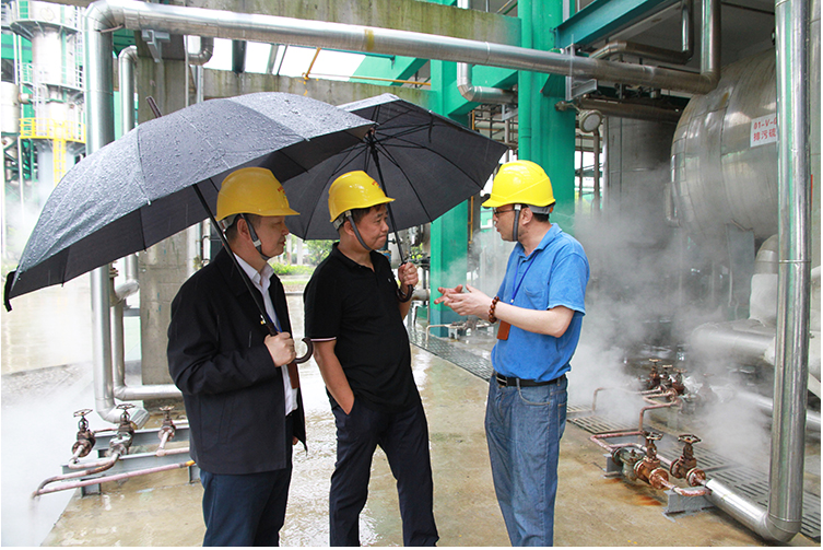6月20日下午,浙江省生態(tài)環(huán)境廳排污權(quán)交易中心主任蔡文祥調(diào)研閏土生態(tài)工業(yè)園,股份公司總經(jīng)理徐萬福陪同。