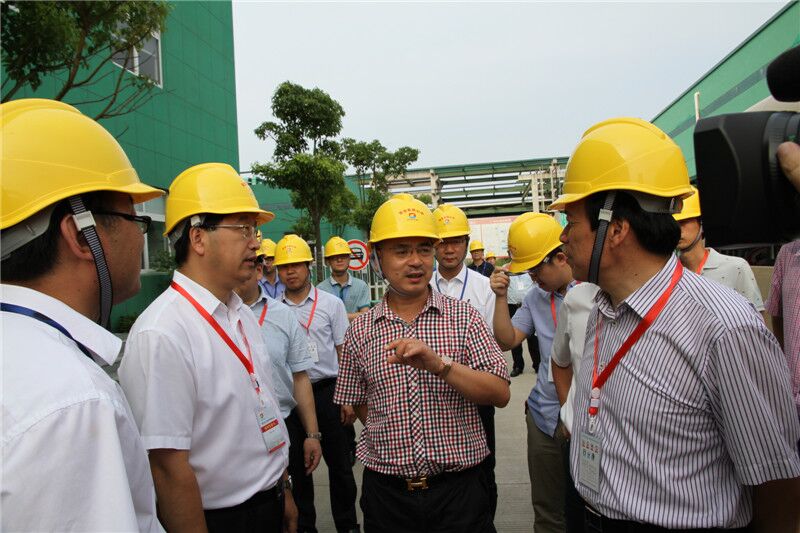8月17日,由紹興市委書記陳金彪(左三)帶隊的督查組到閏土生態(tài)工業(yè)園內(nèi)的閏土新材料公司督查安全生產(chǎn)工作。陳金彪書記一行深入生產(chǎn)一線,了解企業(yè)危化品的儲存、使用情況,詳細詢問了危化品的物理化學(xué)特征、緊急處置辦法和應(yīng)急預(yù)案,并聽取了企業(yè)負責(zé)人關(guān)于生產(chǎn)工藝流程的介紹。陳書記對閏土新材料公司的安全生產(chǎn)和危化品管理工作表示認可,并囑咐企業(yè)一定要時刻緊繃安全生產(chǎn)這根弦,企業(yè)在抓效益的同時,更要抓好安全、環(huán)保工作。紹興市副市長楊文孝、紹興市上虞區(qū)區(qū)委書記孫云耀、紹興市上虞區(qū)區(qū)委常委、杭州灣上虞經(jīng)濟技術(shù)開發(fā)區(qū)管委會主任胡文煒、紹興市上虞區(qū)副區(qū)長王永表等領(lǐng)導(dǎo),閏土股份副董事長阮加春、閏土股份副總經(jīng)理阮光棟、閏土新材料公司總經(jīng)理周杰文等一起陪同。
